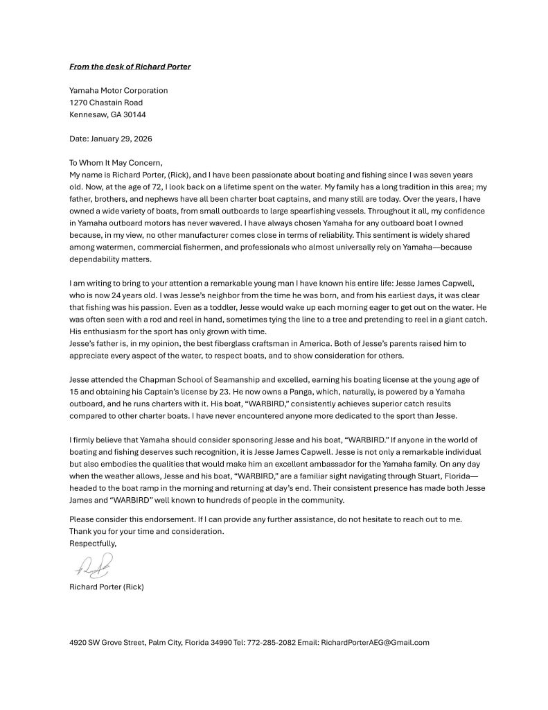 Captain Jesse Capwell isn’t just the owner of War Bird Fishing Charters—he’s the one at the helm on every trip, making sure each guest has a safe, productive, and memorable day on the water. Jesse’s path to becoming a captain came from equal parts passion and hard-earned skill. He trained at Chapman’s School of Seamanship, gaining a deep foundation in navigation, vessel handling, safety, and marine systems. That formal education combines with years of hands-on work in welding and fabrication, giving him a level of mechanical knowledge that most captains never get.